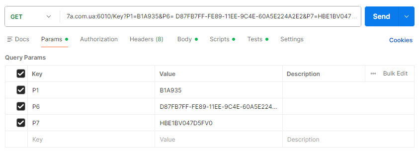 http://7a.com.ua:6010/Key?P1=B1A935&P6=D87FB7FF-FE89-11EE-9C4E60A5E224A2E2&P7=HBE1BV047D5FV0